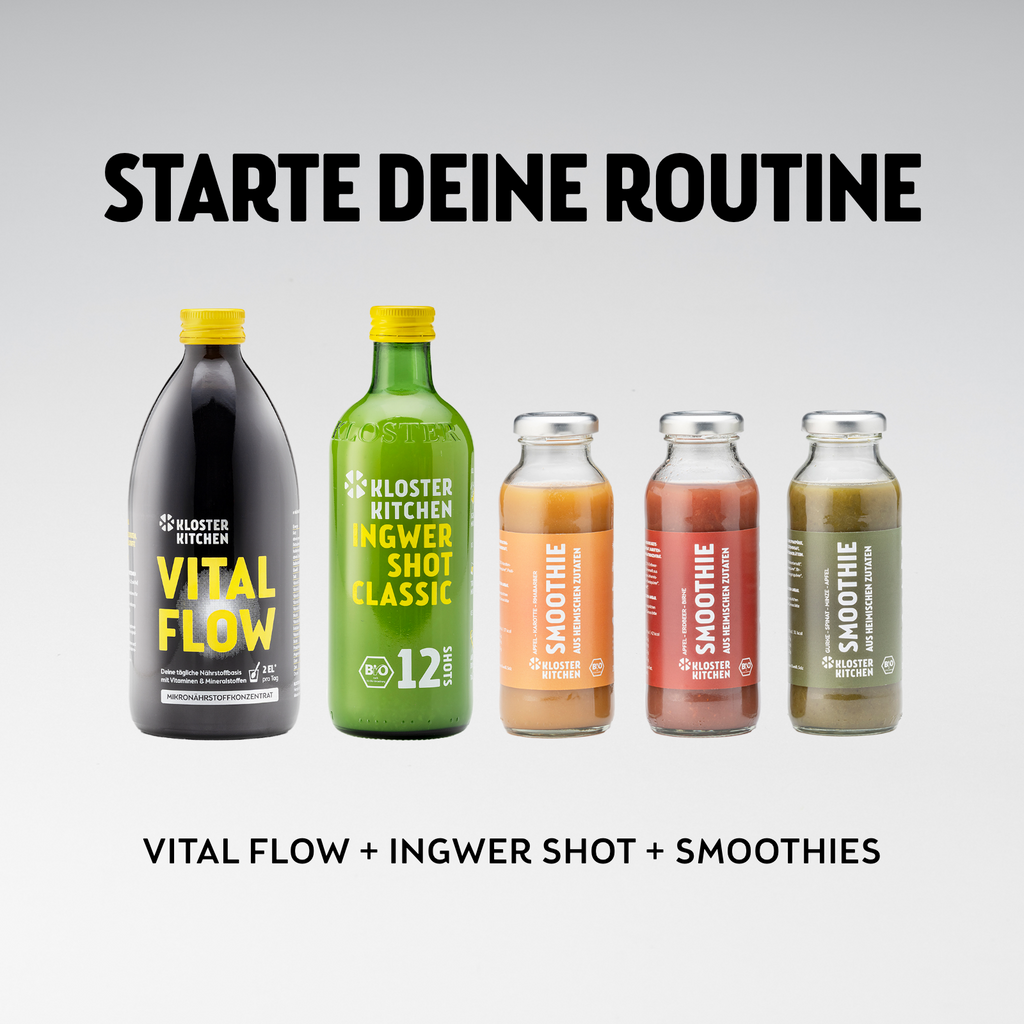 Un'antica ricetta monastica è stata l'ispirazione per ciò che abbiamo reso possibile con un processo di produzione appositamente sviluppato: pezzi di zenzero finemente tritati in ogni prodotto. Ingredienti biologici puri (organismo di controllo biologico DE-ÖKO-006) fanno di tutti i nostri prodotti ciò che desiderate: uno shot di zenzero naturale, perfettamente aromatizzato e leggermente piccante, di qualità superiore, completamente privo di additivi artificiali!