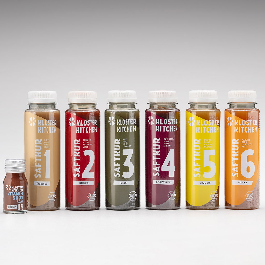 Dal dolce all'acido, dal fruttato all'aspro - sperimentate un viaggio avventuroso di sapori che vi delizierà ad ogni sorso! Cosa rende le nostre cure a base di succhi così speciali? Non solo sono biologici e vegani, ma anche privi di zuccheri aggiunti.